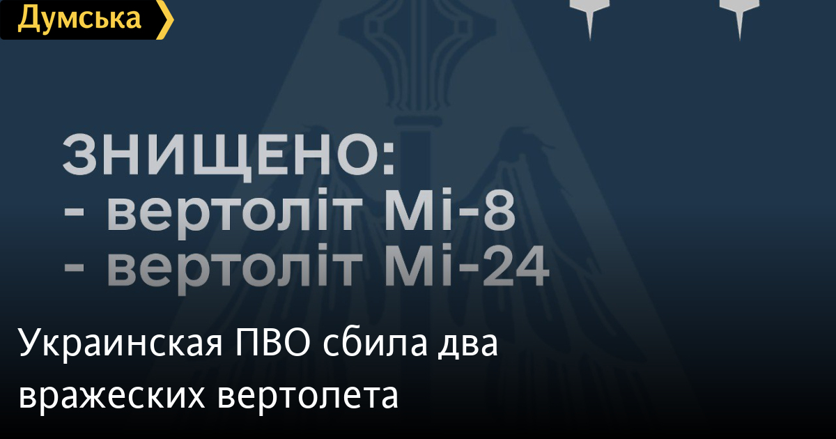 Ракетні підрозділи Повітряного командування «Центр» 4 жовтня збили два ворожі вертольоти – Мі-24 та Мі-8. Про це повідомили у Повітряних силах Збройних сил України. СМЕРТЬ РОСІЙСЬКИМ ОКУПАНТАМ! Помітили помилку? Виділяйте слова з помилкою та натискайте control-enter |