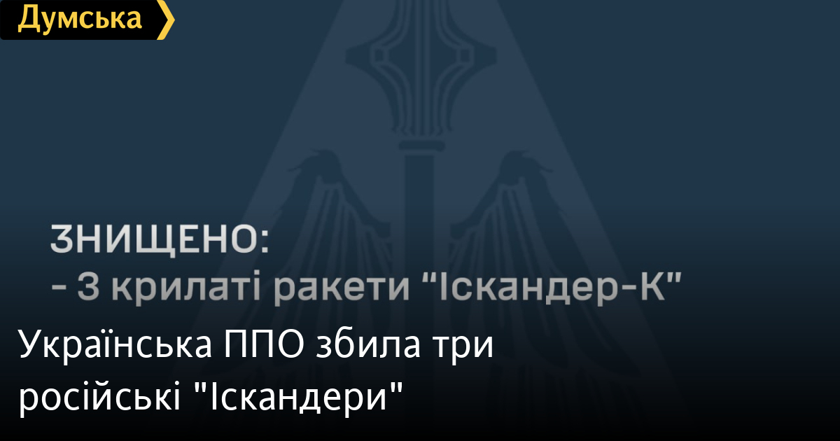 Три крилаті ракети наземного базування «Іскандер-К» збили українські зенітники в ніч на 28 жовтня.