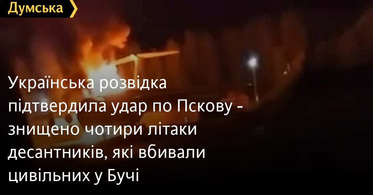 Сили оборони України пізно ввечері 29 серпня завдали удару по аеродрому в Пскові і знищили чотири військово-транспортні літаки Іл-76.