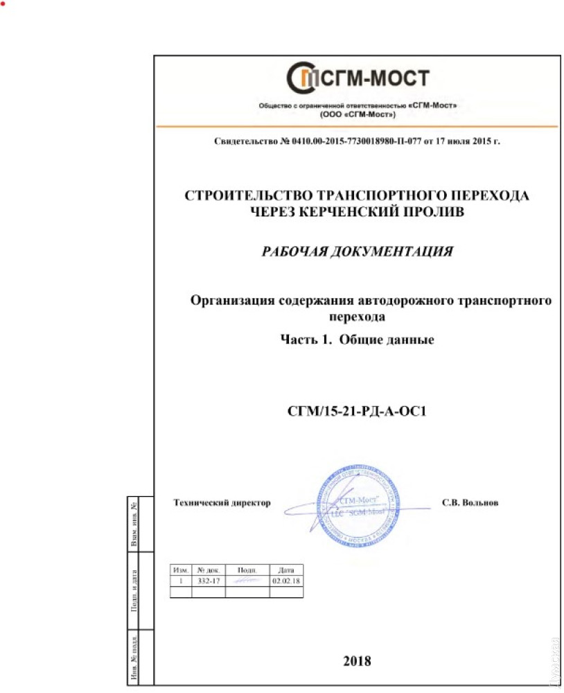 Документ на почти 250 страниц с описанием сооружения, таблицами и чертежами, кроме прочего, содержит подробную информацию о рельефе местности, дорожном покрытии, опорах моста, противооползневых конструкциях, заездах-съездах и всей инфраструктуре комплекса.