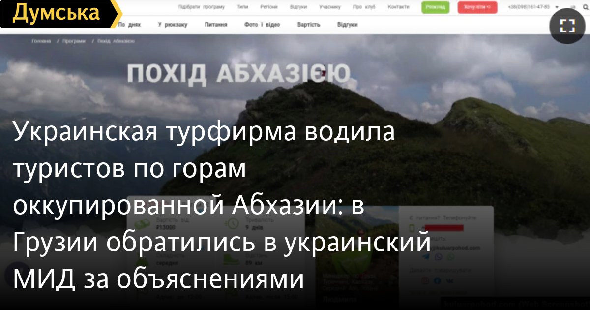 Ранее блогер, путешественник и участник боевых действий Валерий Маркус обратил внимание на то, что украинская компания «Кулуар Поход» устраивает туры в грузинском регионе Абхазия. Также на сайте компании была размещена информация, в частности, о походе по горам Абхазии.