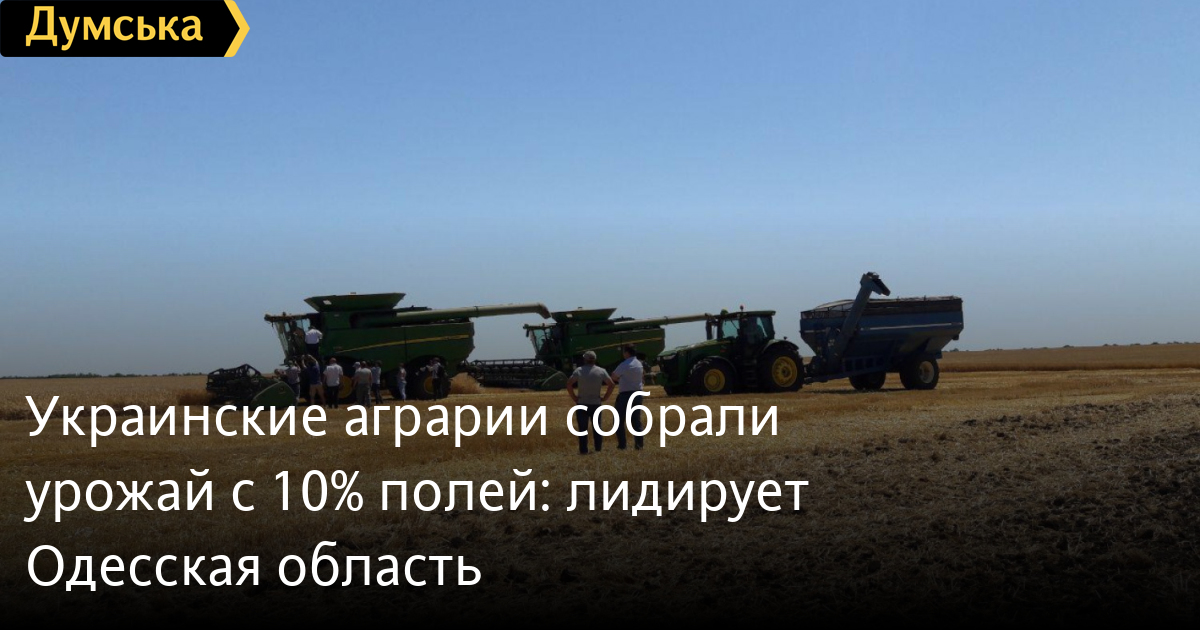 Это урожай с 10% полей общей площадью 1,2 млн га, сообщают в Министерстве аграрной политики и продовольствия Украины.