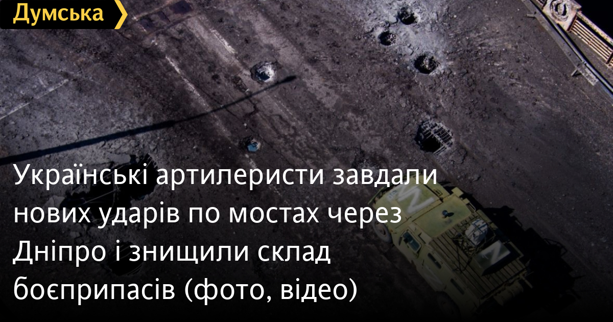 Нових ударів завдали ракетно-артилерійські підрозділи Збройних сил України по Антонівському мосту та греблі Каховської ГЕС, через які здійснюється постачання правобережного угруповання російських окупантів на півдні України.