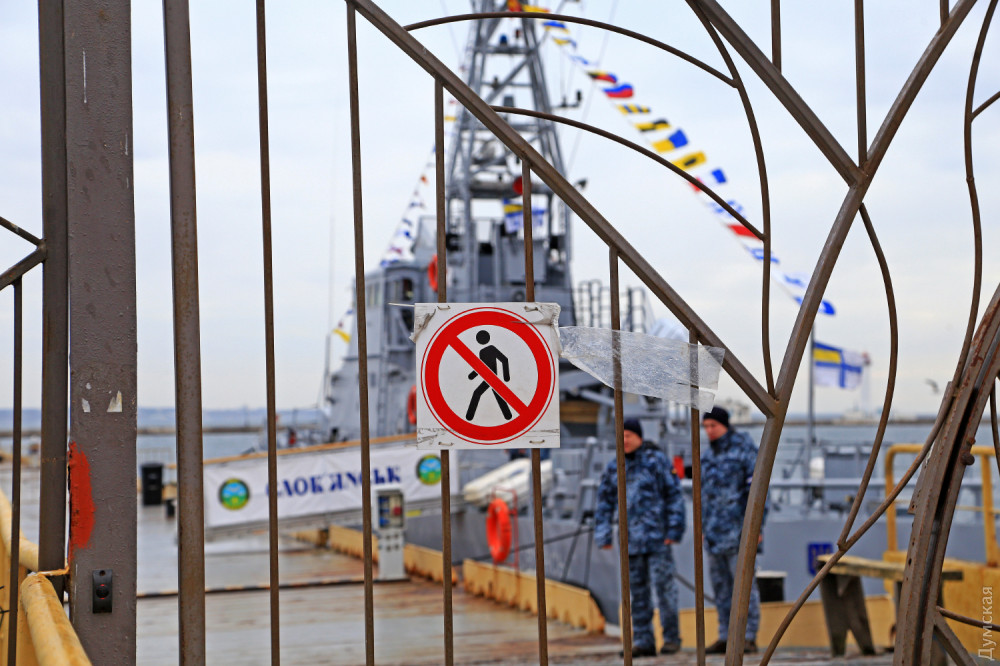 Во время церемонии выпуска курсантов института Военно-морских сил НУ «ОМА», которая прошла на морвокзале, «Старобельск» и «Славянск» пришвартовали у причала яхт-клуба «Одесса».