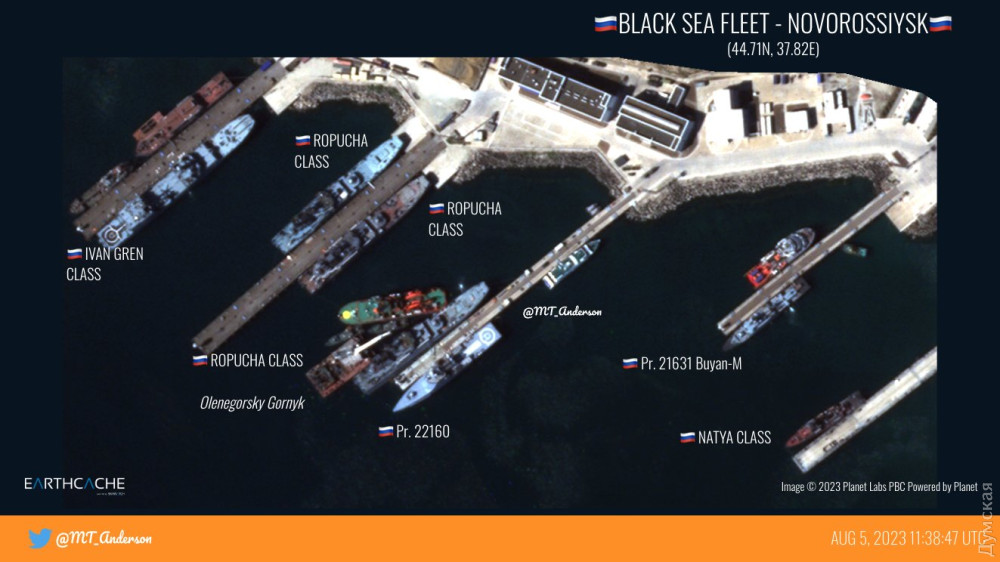Цікаво, що в порту Новоросійська немає сухого доку, в який можна було б помістити корабель для ремонту, а найближчий док розташований у Керчі. Зрозуміло, що буксирування неможливе — навіть невелике хвилювання виявиться для нього фатальним. Переміщати док у Новоросійськ також ніхто не буде — він стане легкою здобиччю для наших дронів, а ворог втратить можливість ремонтувати свої кораблі.