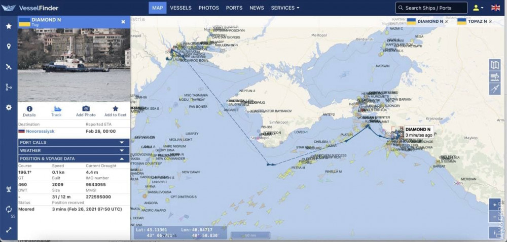 Напомним также, что 17 января спецподразделение СБУ взяло их штурмом. Однако добиться судебного решения об аресте спецслужба не смогла. В результате буксиры, опасаясь санкций и последующего ареста, 21 февраля покинули украинские территориальные воды, обогнули Крымский полуостров и остановились на рейдовой стоянке OPL Кавказ.