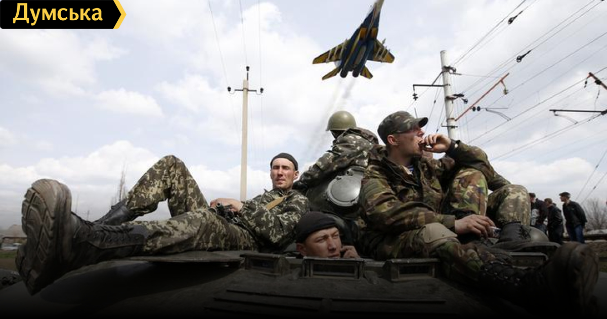 Под Краматорском несколько десятков человек пытались остановить колонну военной техники украинской армии, однако солдаты выстроились в живой коридор, запустили сигнальную ракету и дали проехать технике.