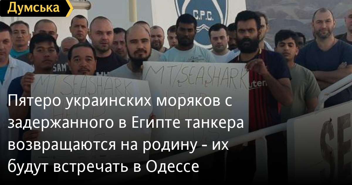 Пятеро украинских моряков с задержанного в Египте танкера возвращаются на родину — их будут встречать в ОдессеЗавтра в Одессе будут встречать пятерых моряков с задержанного в Египте танкера «Sea Shark». Об этом сообщает «РБК-Украина» со ссылкой на фонд помощи морякам «Ассоль». Пятеро украинцев прибудут в Одесский аэропорт в понедельник, 27 мая. Танкер «Sea Shark» задержали вооруженными силами Египта в декабре прошлого года. Судно удерживали в районе Айн-Сохна. «Поздно вечером 25 мая поступила информация, что часть экипажа вместе с украинским капитаном была освобождена и отправляется в гостиницу. Все они ожидают оформления документов и возврата домой», — рассказали в фонде. Экипаж задержанного судна состоял из 31 человека, среди которых 17 украинцев. Также на борту танкера находятся граждане Индии, Филиппин, Шри-Ланки и Азербайджана. По словам членов экипажа, танкер «Sea Shark» был задержан Военно-морским флотом Египта из-за непреднамеренного и случайного входа в территориальные воды Египта 18 декабря 2018 года. СМЕРТЬ РОССИЙСКИМ ОККУПАНТАМ! Заметили ошибку? Выделяйте слова с ошибкой и нажимайте control-enter |
