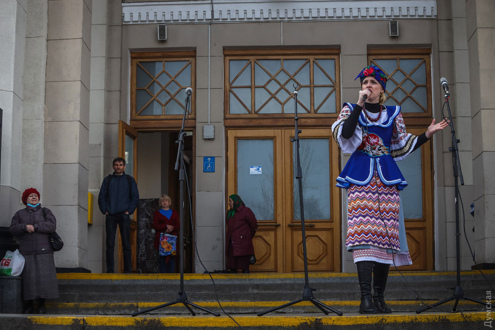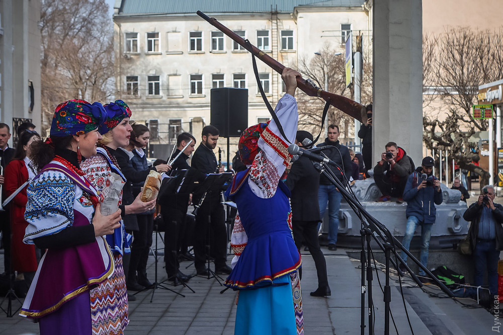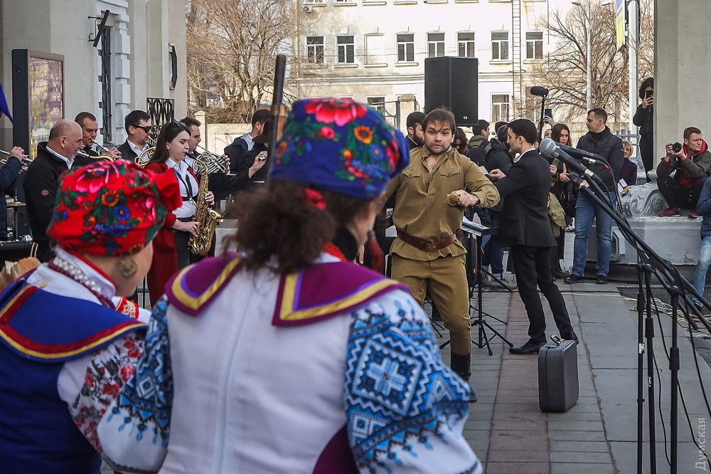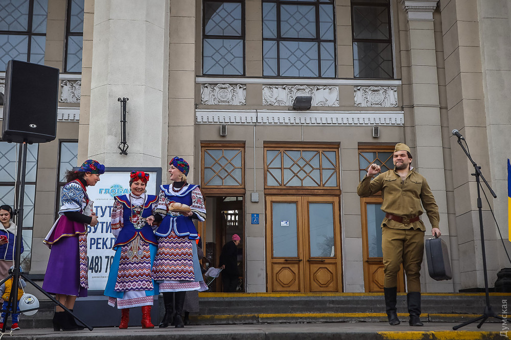 С импровизированной сцены в исполнении оркестра звучали известные украинские и одесские мелодии, а в заключении зрители смогли увидеть небольшую сценку в исполнении артистов творческого объединения «Творча сила»: прибывший на вокзал оккупант в советской военной форме был изгнан из города отрядом украинских девушек и выстрелами солью из ружья.