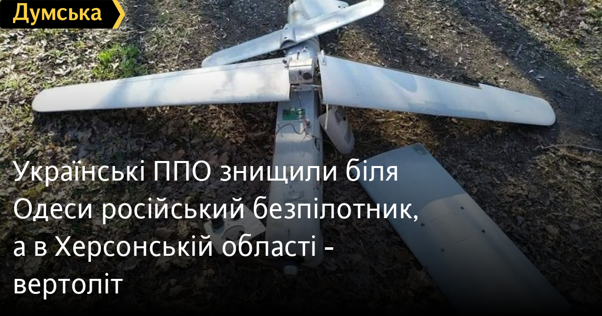 Безпілотний літальний апарат оперативно-тактичного рівня, ймовірно, «Орлан-10», і гелікоптер Ка-52 російських нацистів збили у п'ятницю підрозділи ППО повітряного командування «Південь».