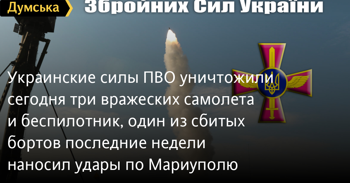 Украинские силы ПВО уничтожили сегодня три вражеских самолета и беспилотник, один из сбитых бортов последние недели наносил удары по МариуполюДва вражеских самолета и один беспилотник уничтожены сегодня подразделениями, находящимися в оперативном подчинении одной из зенитных ракетных частей Днепропетровской области. Как сообщает воздушное командование «Схід», все три воздушных цели были ликвидированы в Слобожанском направлении. Еще один самолет российских нацистов, который наносил удары по Мариуполю, уничтожен недалеко от бассейна «Нептун». По данным советника главы Офиса Президента Алексея Арестовича, сбитый над Мариуполем самолет стал сотым в нашей копилке. СМЕРТЬ РОСІЙСЬКИМ ОКУПАНТАМ! Помітили помилку? Виділяйте слова з помилкою та натискайте control-enter |