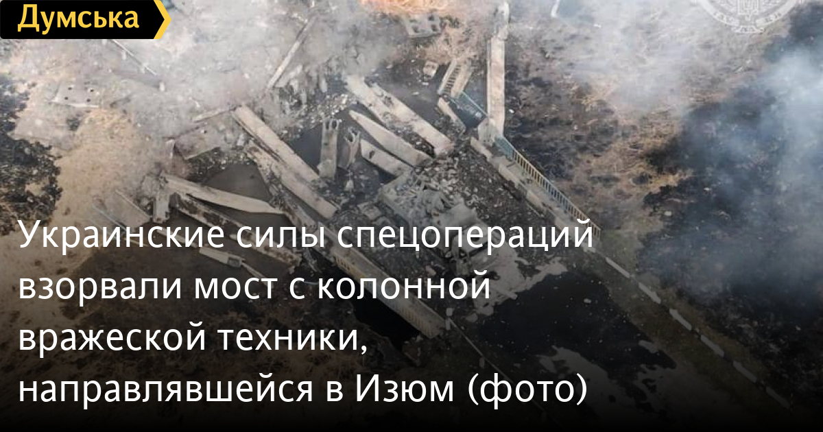 Мост с колонной вражеской техники, направлявшейся в Изюм, взорвала группа Сил спецопераций Украины.