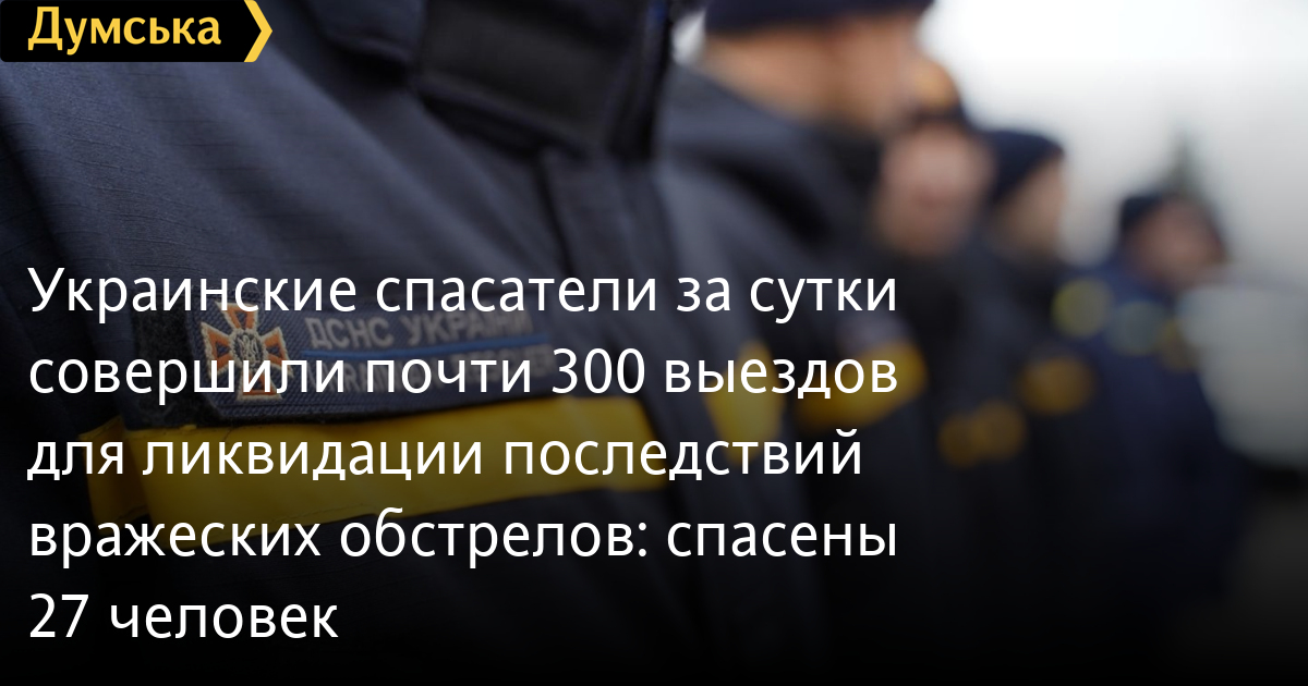 Украинские спасатели за сутки совершили почти 300 выездов для ликвидации последствий вражеских обстрелов: спасены 27 человек1 208 выездов совершили украинские спасатели за минувшие сутки, сообщают в пресс-службе ведомства. По данным ГСЧС, 296 выездов из них были связаны с ликвидацией последствий вражеских обстрелов. Спасены 27 человек. И снова мишенями оккупантов стали населенные пункты и объекты гражданской инфраструктуры. Пиротехники обезвредили 636 взрывоопасных предметов и 10,5 кг взрывчатых веществ. Для этого была обследована территория площадью 121,46 га. На государственной границе в Волынской, Закарпатской, Львовской и Черновицкой областях ГСЧС в сотрудничестве с Красным крестом Украины и органами городской власти развернули 87 палаток для обогрева и приема граждан. За сутки уток помощь там получили порядка 3,2 тыс. человек. Также в Украине были обесточены 1344 населенных пункта. Для обеспечения аварийным электроснабжением объектов социальной сферы были привлечены 10 генераторов, 5 из которых – для обеспечения электричеством больниц. СМЕРТЬ РОСІЙСЬКИМ ОКУПАНТАМ! Помітили помилку? Виділяйте слова з помилкою та натискайте control-enter |
