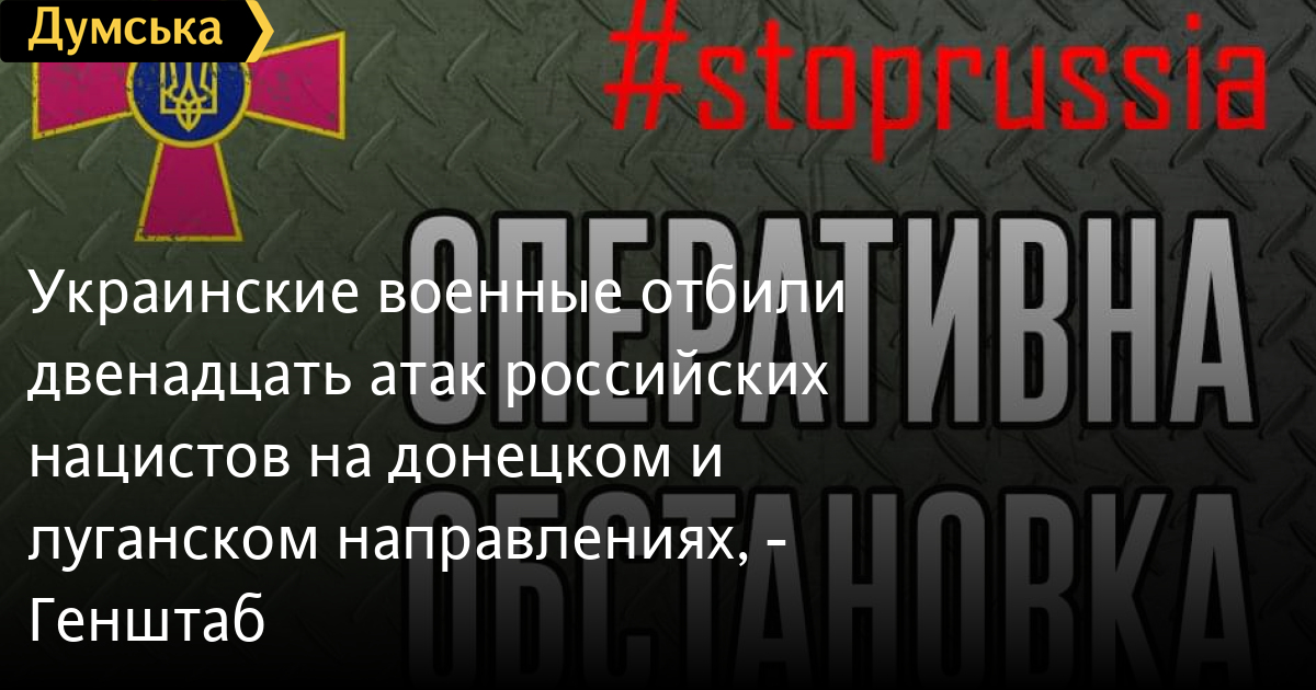 На донецком и луганском направлениях за минувшие сутки отбиты двенадцать атак врага, уничтожены три танка, три артиллерийские системы, шесть единиц боевой бронированной техники и семь автомобилей противника.