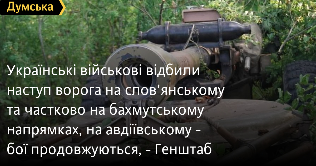 Сили оборони відбили всі ворожі удари на слов'янському напрямку, на бахмутському та авдіївському – продовжуються бої.
