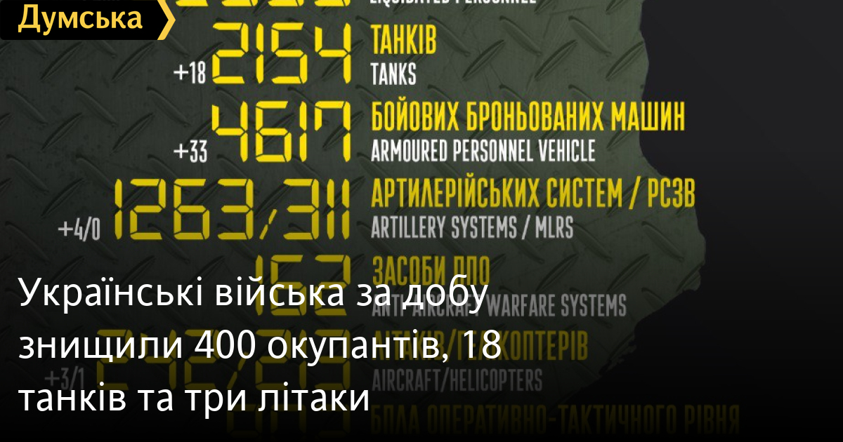 Також вчора було знищено: