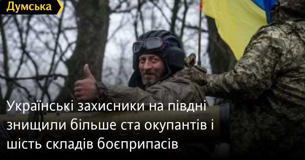 Украинские военные на юге страны уничтожили более ста российских оккупантов, вражеский командный пункт и шесть складов боеприпасов.