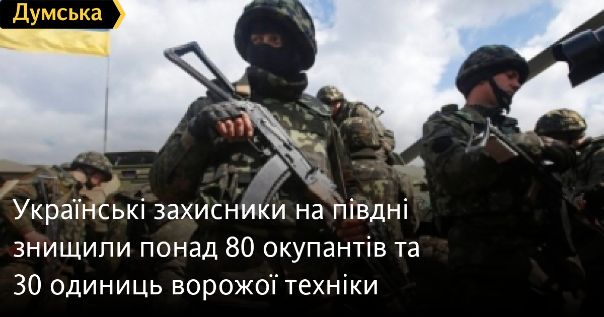 82 російські загарбники та 30 одиниць ворожої техніки знищили українські військовослужбовці минулої доби на півдні країни.