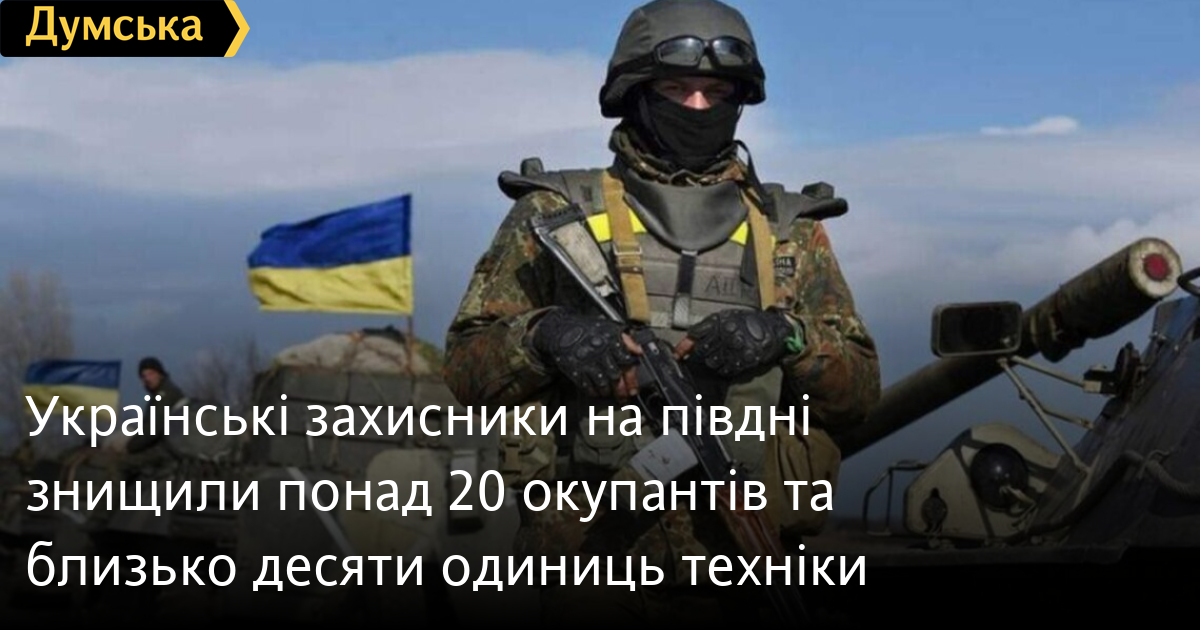 23 російські окупанти та близько десяти одиниць техніки знищили українські військовослужбовці минулої доби на півдні країни.