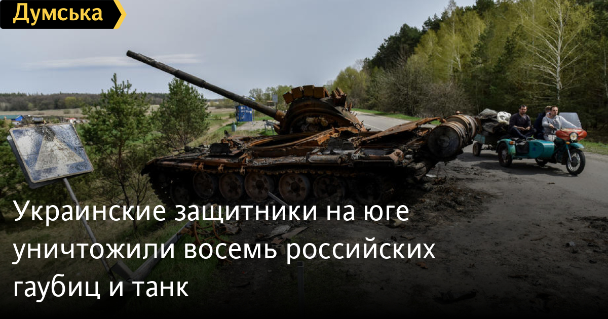 Украинские защитники на юге уничтожили восемь российских гаубиц и танк47 военнослужащих российской оккупационной армии, шесть гаубиц «Мста-Б», две 120-мм гаубицы и танк Т-62 уничтожили подразделения оперативной группировки войск «Каховка» Вооруженных сил Украины, действующие на южном направлении. Об этом сообщили в оперативном командовании «Юг». Также уничтожено восемь единиц бронированной и 14 автомобильной техники, а также машину связи оперативно-тактического уровня. При зачистке села Потемкино захвачена БМП-2 противника. Результаты ударов по средствам ПВО противника доразведываются. Украинская штурмовая авиация дважды сумела нанести удар по скоплению личного состава и техники противника в районе Новогригорьевки и Давыдова Брода. СМЕРТЬ РОССИЙСКИМ ОККУПАНТАМ! Заметили ошибку? Выделяйте слова с ошибкой и нажимайте control-enter |