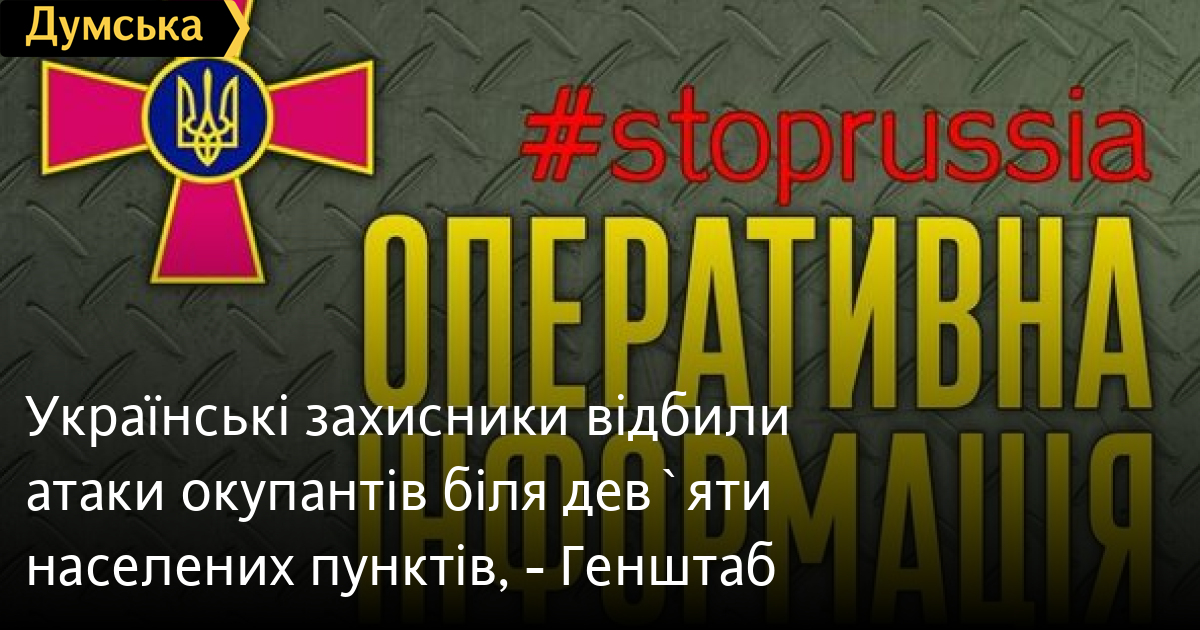 Українські захисники відбили атаки окупантів біля дев`яти населених пунктів, — ГенштабОдинадцять ракетних та 28 авіаційних ударів завдав ворог протягом доби по території України. Крім того, він здійснив понад 65 обстрілів з реактивних систем залпового вогню. Як повідомили в ранковому зведенні Генштабу, ударів противника зазнали райони понад 25 населених пунктів. Для своїх злочинів окупанти використали крилаті, авіаційні та зенітні керовані ракети. Крім того, ворог здійснив пуски понад десяти іранських БПЛА Shahed-136. За добу підрозділи Сил оборони відбили атаки окупантів в районах населених пунктів Білогорівка, Бахмут, Бахмутське, Кліщіївка, Красногорівка, Новомихайлівка, Невельське, Опитне та Мар’їнка. Існує висока ймовірність здійснення російськими окупантами обстрілів мирного населення Херсонської області. Так, вранці 19 жовтня цього року, на тимчасово зайнятій території, проведена розсилка повідомлень із закликом до евакуації населення Нової Каховки нібито у зв’язку з підготовкою обстрілів з боку підрозділів Збройних Сил України. В результаті ударів Сил оборони протягом останніх днів, підтверджено ураження живої сили та техніки противника в Запорізькій області — до 150 військовослужбовців поранено та знищено близько 15 одиниць озброєння і військової техніки. Авіація Сил оборони протягом минулої доби завдала десять ударів. Підтверджено ураження шести районів зосередження озброєння та військової техніки, а також чотирьох позицій зенітних ракетних комплексів ворога. Підрозділи протиповітряної оборони збили шість крилатих ракет, один гелікоптер Ка-52 та 16 БпЛА, з них - 14 Shahed-136 іранського виробництва. Підрозділи ракетних військ і артилерії уразили три пункти управління, шість районів зосередження живої сили, озброєння і військової техніки, один склад боєприпасів, станцію РЕБ та шість інших важливих об’єктів, включаючи міст та понтонну переправу противника. СМЕРТЬ РОСІЙСЬКИМ ОКУПАНТАМ! Помітили помилку? Виділяйте слова з помилкою та натискайте control-enter |