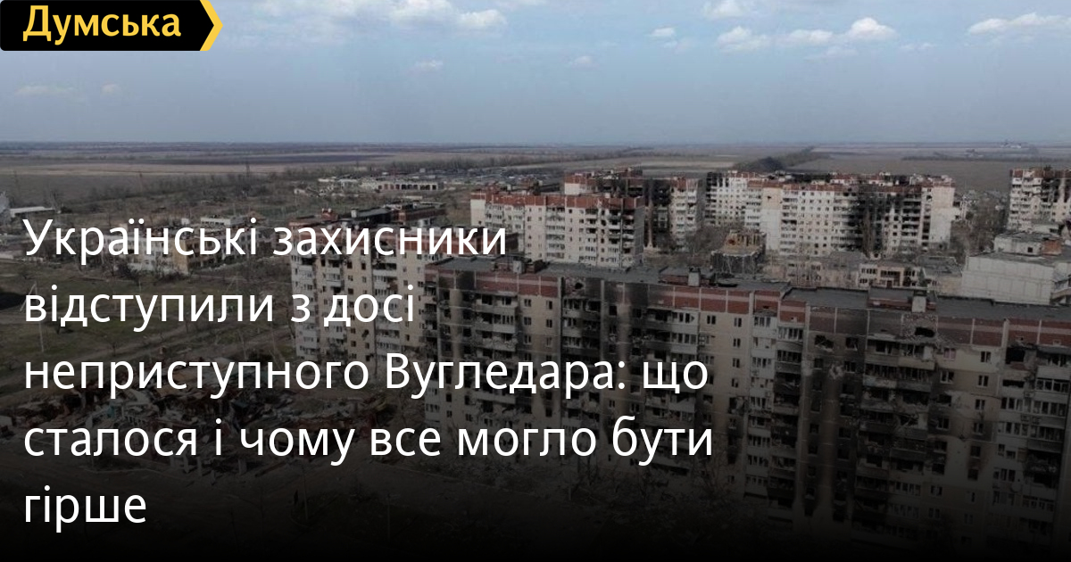 «Це, звісно, важка втрата, але загалом у Вугледара немає такого стратегічного значення, яке йому приписують. Так, це важливий опорний пункт, оскільки йдеться про багатоповерхівки, розташовані на височині посеред майже голої рівнини, але не транспортний вузол. Крім того, на схід і північ є ще лінії оборони, тож на оперативний простір росіяни не вирвалися. Впевнений, що далі буде все як і раніше: повільне просування, витіснення українських захисників, без проривів і танкових клинів у стилі Другої світової. Словом, становище, поза всякими сумнівами, важке, але це не катастрофа».