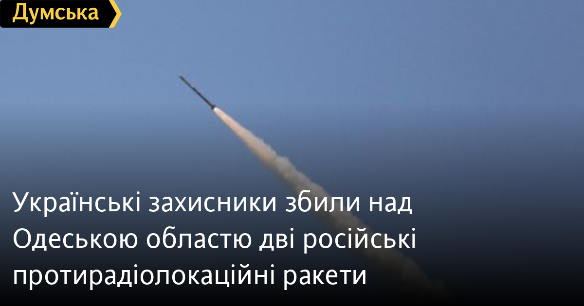 Дві протирадіолокаційні ракети Х-31П, запущені російським літаком із району Чорного моря, збили над Одеською областю українські захисники.