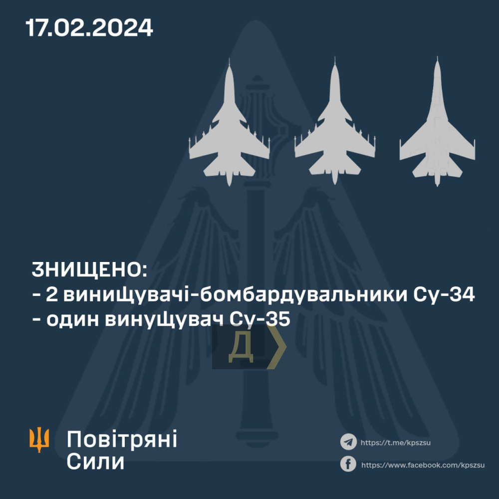 За його словами, йдеться про два винищувачі-бомбардувальники Су-34 та винищувач Су-35.