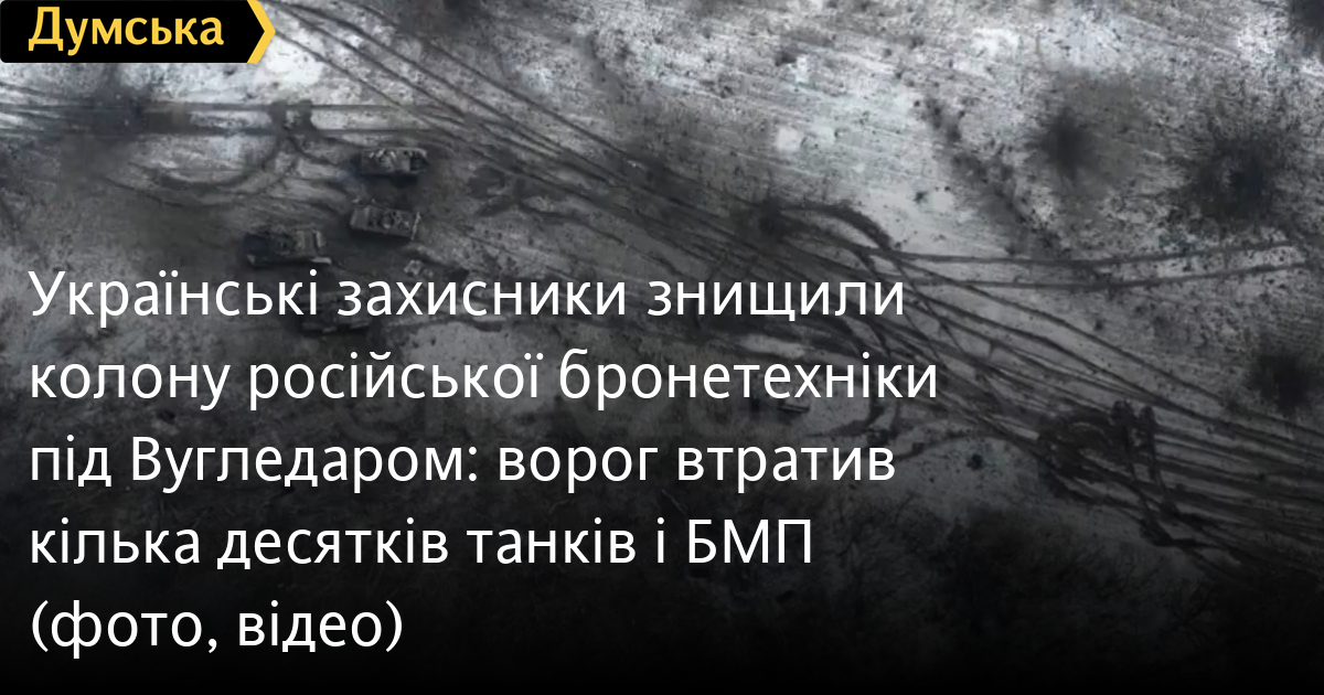 «Часть техники была уничтожена ударами ПТУР (запускалась из высотных домов Угледара), часть расстреляна стреляющей исключительно точно артиллерией противника. Потеряно более 30 единиц бронетехники, потери двухсот только у танкистов многие десятки. Морпехов, спецназовцев и мотострелков погибло еще больше. И самое главное все эти потери оказались односторонними украинские войска расстреляли атакующих как в тире, нанести им встречные потери наши бойцы не смогли», заявил Гиркин.