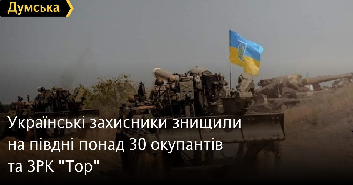 Минулої доби українські захисники на півдні нашої країни знищили 32 окупанти, ворожу самохідну гаубицю та зенітно-ракетний комплекс.