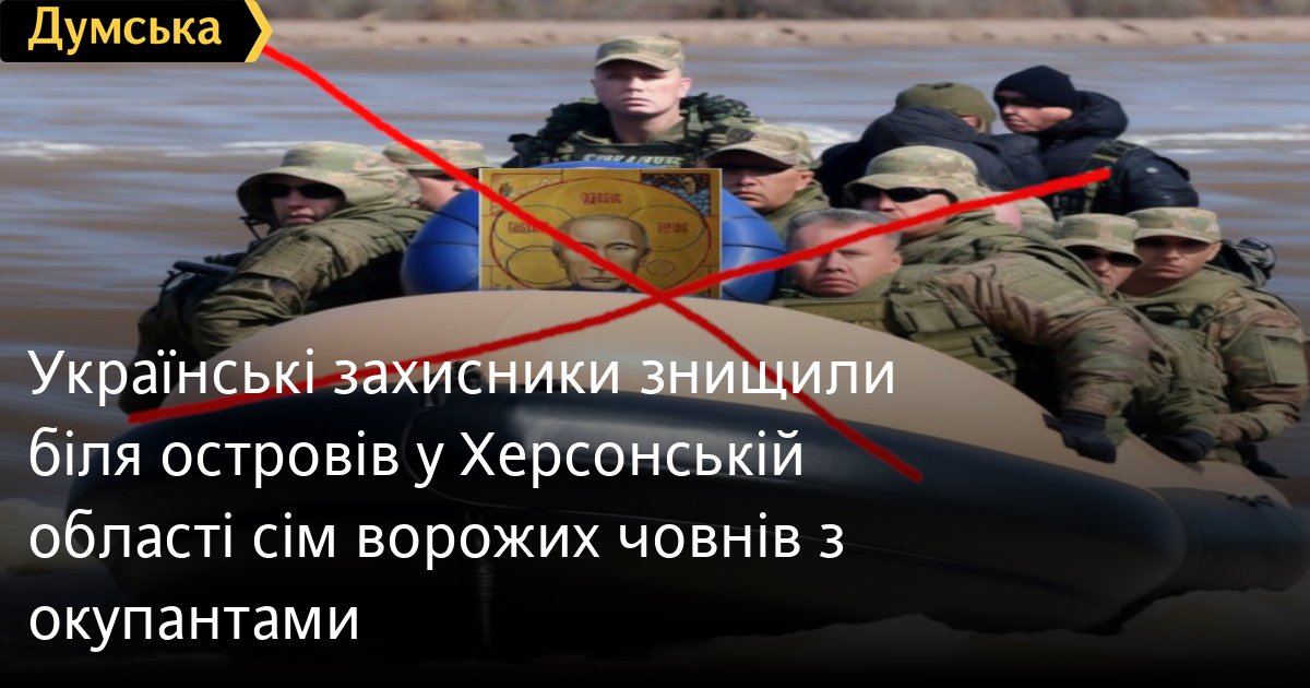 «Ми знищили їхній налаштований флот із семи човнів. Противник обладнав їх навісними моторами, облаштував кулеметами, укріпив борти і намагався в такий спосіб дістатися до островів. Ця їхня акція була невдалою, адже за три дні човни та особовий склад у кількості близько 20 осіб знищено», — сказала Наталія Гуменюк.