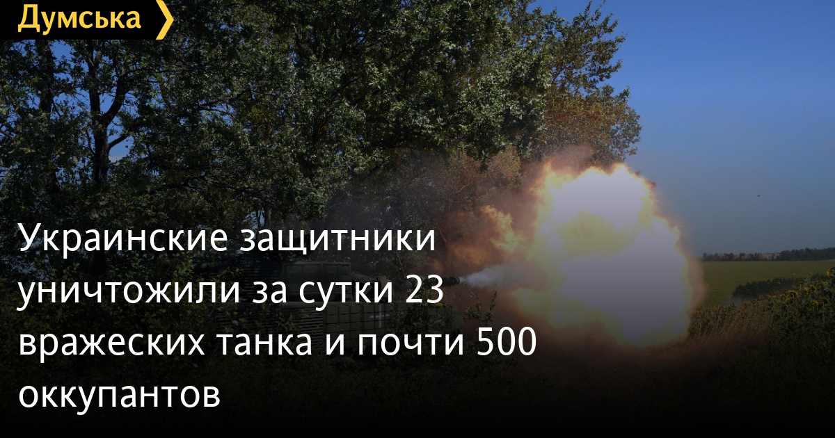 Українські захисники знищили за добу 23 ворожі танки і майже 500 окупантів470 осіб, 23 танки і 23 артсистеми втратили окупанти в Україні за минулу добу. Крім того, за даними Генерального штабу Збройних сил України, наші захисники також знищили дев'ять бойових броньованих машин, одну РСЗВ, чотири БПЛА оперативно-тактичного рівня, 33 одиниці автомобільної техніки і одну одиницю спецтехніки. Усього з початку повномасштабного вторгнення втрати ворога склали: особового складу — 263 490 осіб; танків ‒ 4459 одиниць; бойових броньованих машин ‒ 8613 одиниць; артилерійських систем – 5530 одиниць; РСЗВ – 735 одиниць; засоби ППО ‒ 500 одиниць; літаків – 315 одиниць; гелікоптерів – 316 одиниць; БПЛА оперативно-тактичного рівня – 4421; крилаті ракети ‒ 1445; кораблі /катери ‒ 18 одиниць; автомобільної техніки та автоцистерн – 8009 одиниць; спеціальна техніка ‒ 831. СМЕРТЬ РОСІЙСЬКИМ ОКУПАНТАМ! Помітили помилку? Виділяйте слова з помилкою та натискайте control-enter |