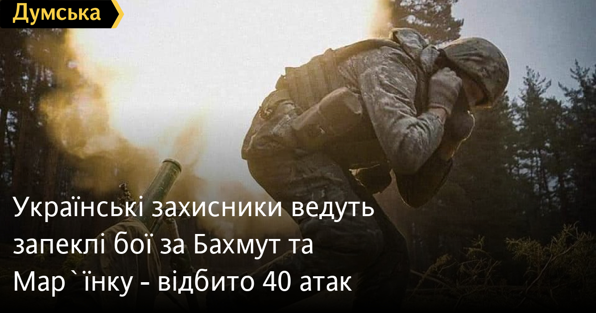 Українські захисники ведуть запеклі бої за Бахмут та Мар`їнку — відбито 40 атак40 атак російських окупантів на Бахмут та Мар'їнку відбили за добу українські захисники. Про це повідомив Генштаб Збройних сил України у вечірньому зведенні. На бахмутському напрямку від ворожих обстрілів постраждали Васюківка, Оріхове-Василівка, Новомаркове, Григорівка, Богданівка, Бахмут, Іванівське, Часів Яр, Ступочки, Діліївка, Торецьк і Нью-Йорк Донецької області. На Мар'їнському напрямку ворожих обстрілів зазнали Перемога і Новомихайлівка Донецької області. СМЕРТЬ РОСІЙСЬКИМ ОКУПАНТАМ! Помітили помилку? Виділяйте слова з помилкою та натискайте control-enter |