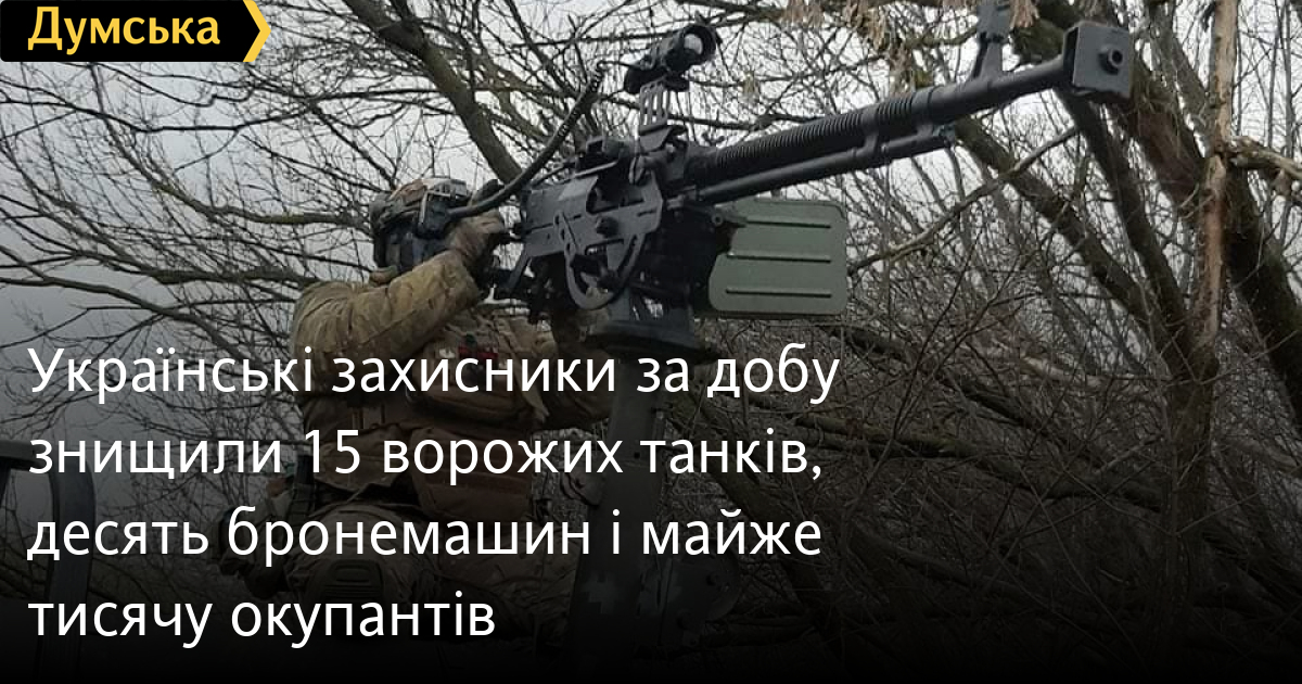 960 осіб, 15 танків і дев'ять артсистем втратили окупанти в Україні за минулу добу.
