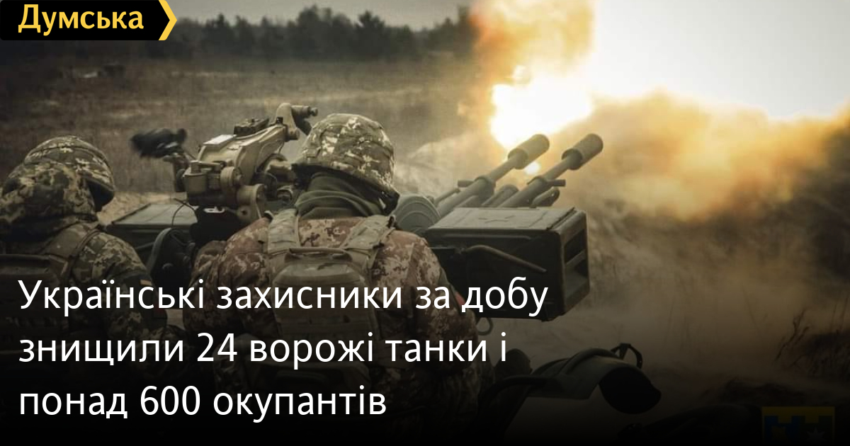 620 осіб, 24 танки і одну артсистему втратили окупанти в Україні за минулу добу.