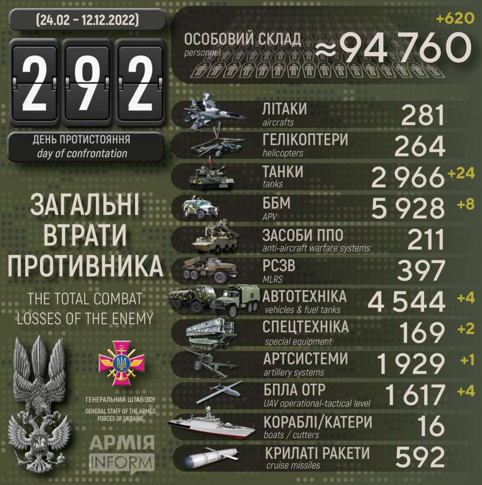 Усього з початку повномасштабного вторгнення втрати ворога склали: