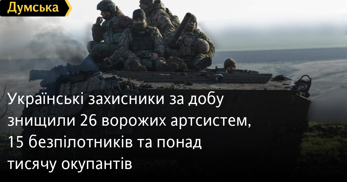 Крім того, за даними Генерального штабу Збройних сил України, наші захисники також знищили 15 бойових броньованих машин, 26 артсистем, три засоби ППО, 15 БПЛА оперативно-тактичного рівня, 32 одиниці автомобільної техніки та сім одиниць спецтехніки.
