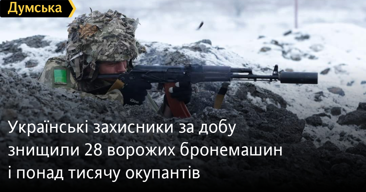 Крім того, за даними Генерального штабу Збройних сил України, наші захисники також знищили 28 бойових броньованих машин, три одиниці автомобільної техніки і п'ять одиниць спецтехніки.