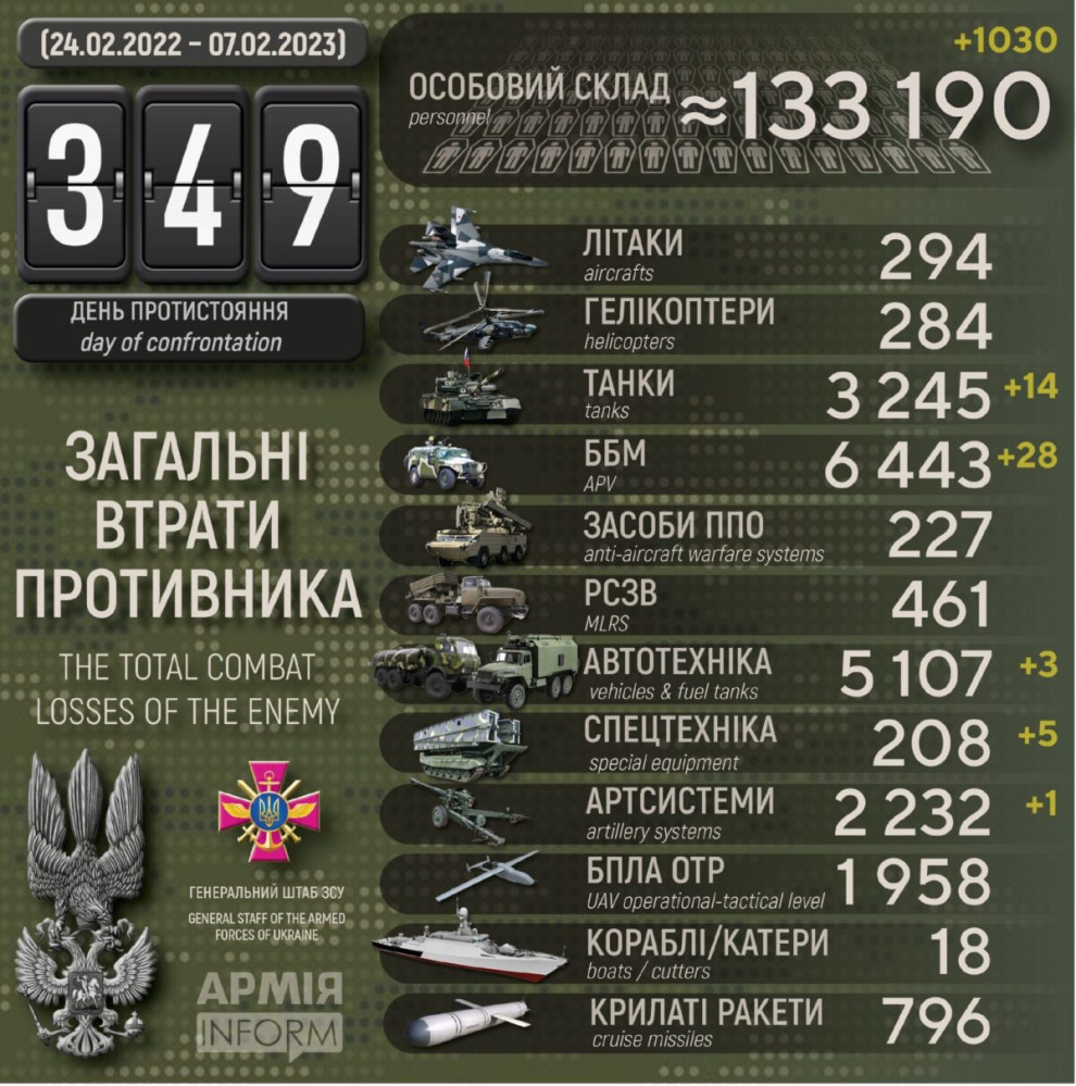 Усього з початку повномасштабного вторгнення втрати ворога склали: