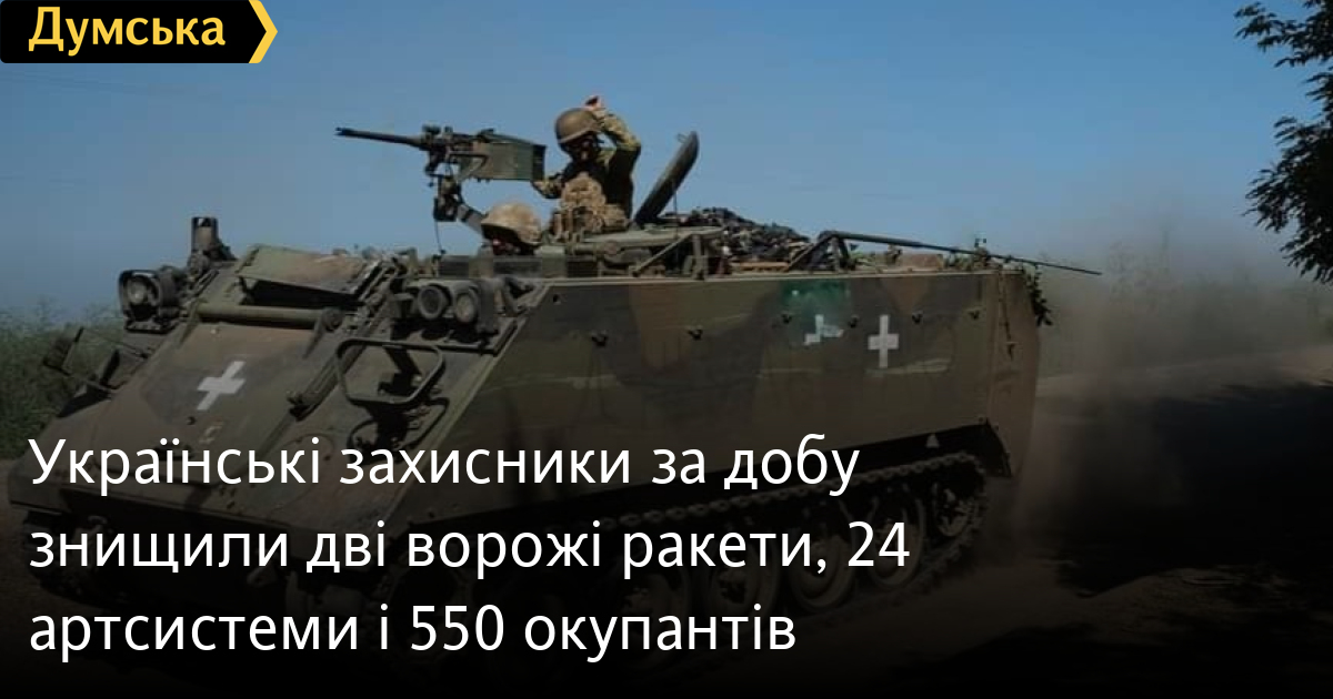 550 осіб, дві крилаті ракети і п'ять танків втратили окупанти в Україні за минулу добу.