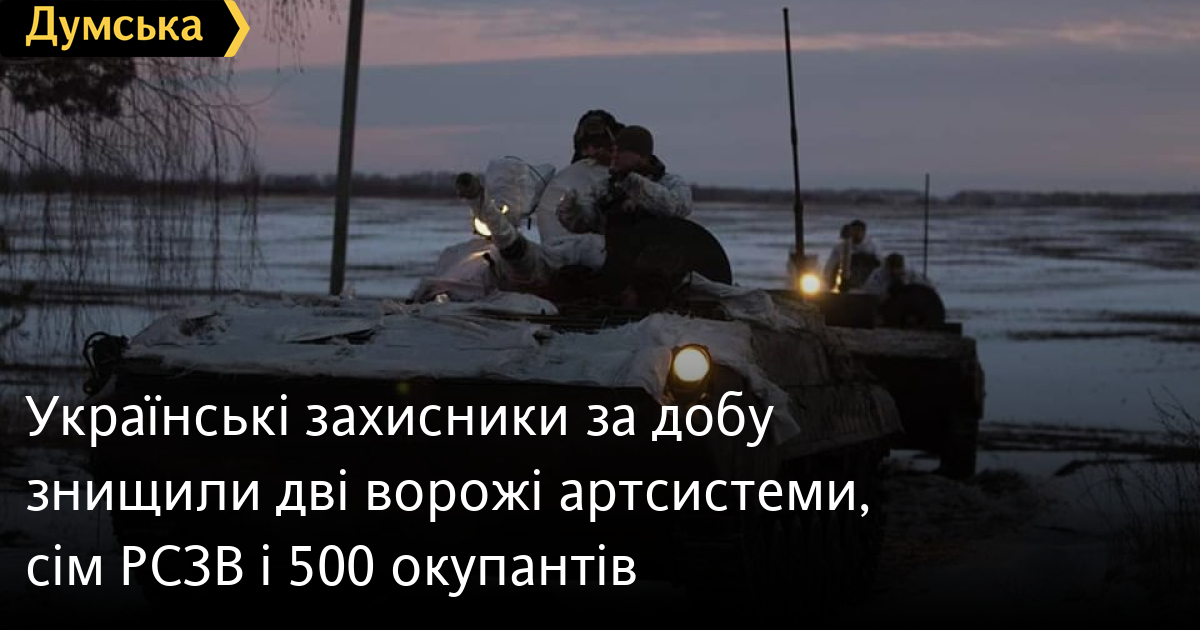 500 осіб, дві артсистеми та сім РСЗВ втратили окупанти в Україні за минулу добу.
