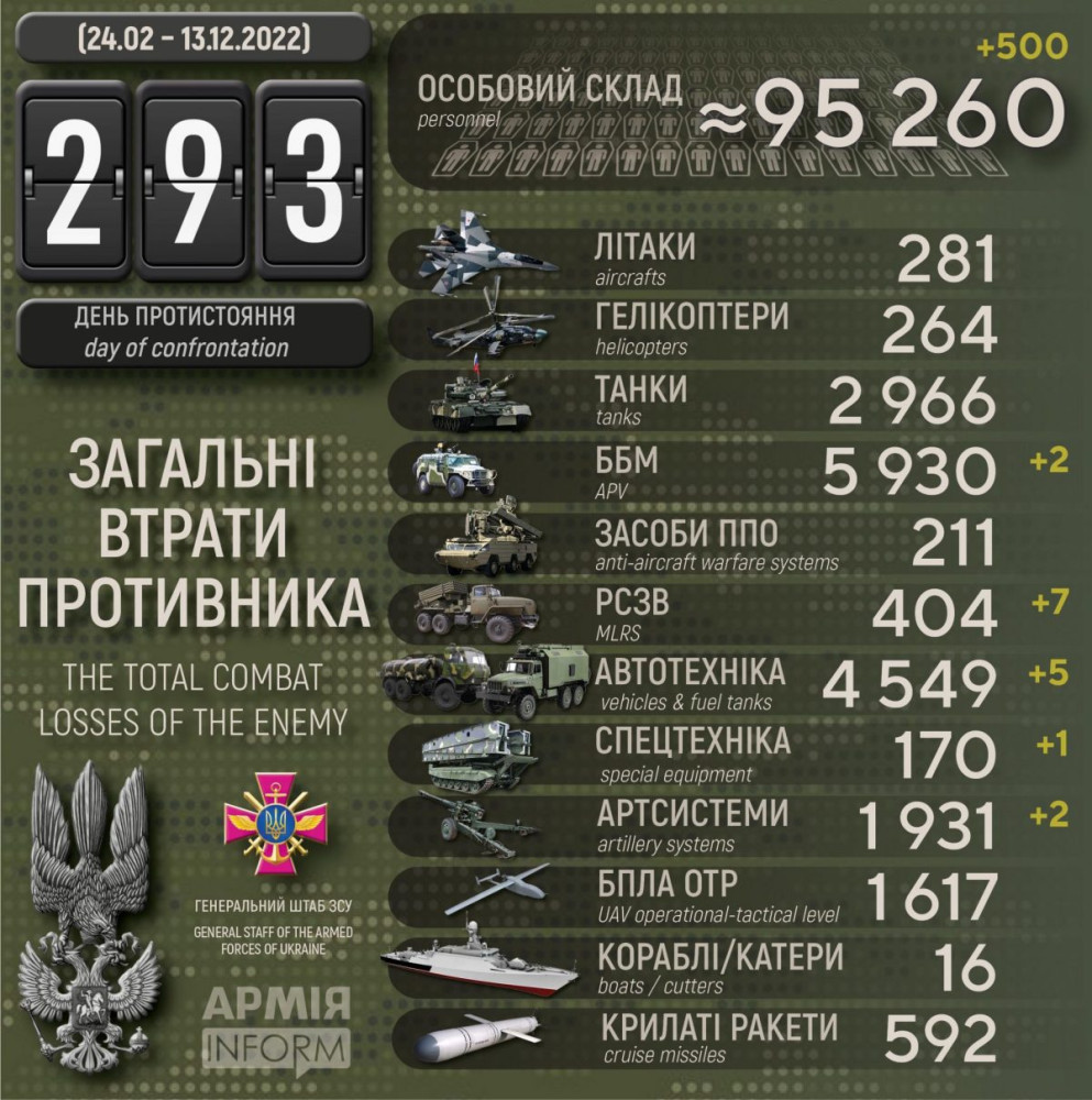 Усього з початку повномасштабного вторгнення втрати ворога склали: