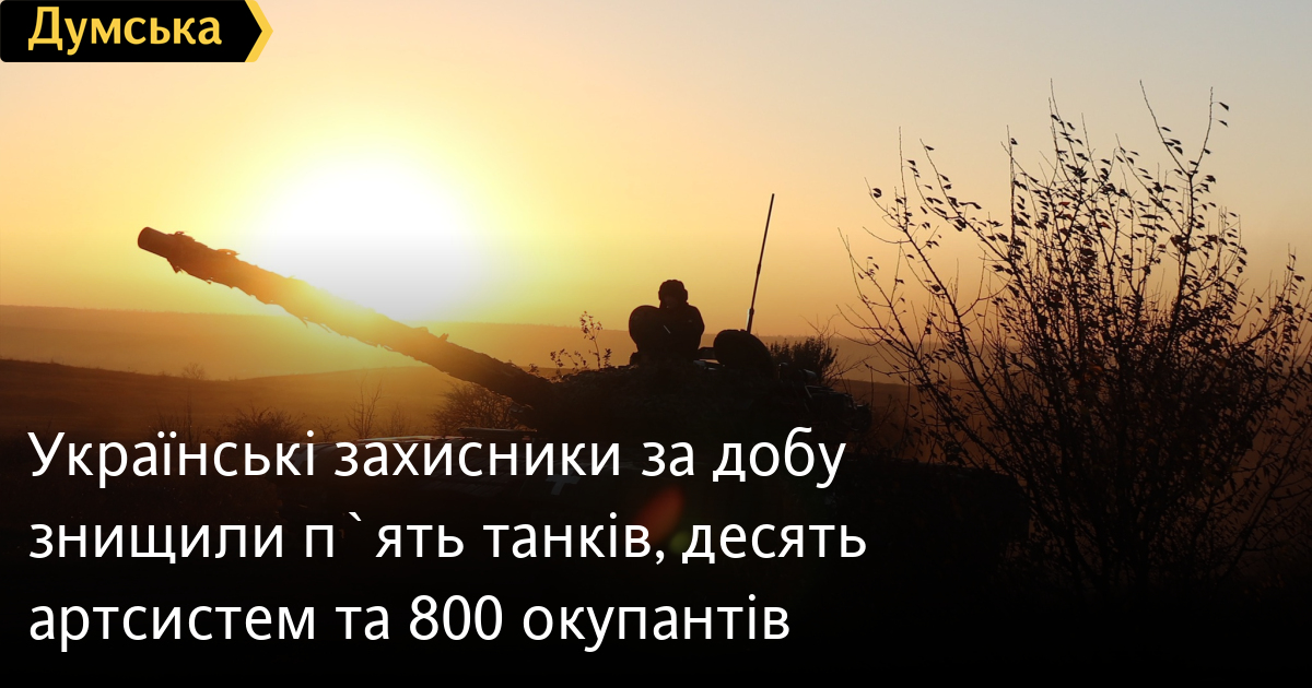800 осіб, одну крилату ракету та п'ять танків втратили російські окупанти минулої доби.