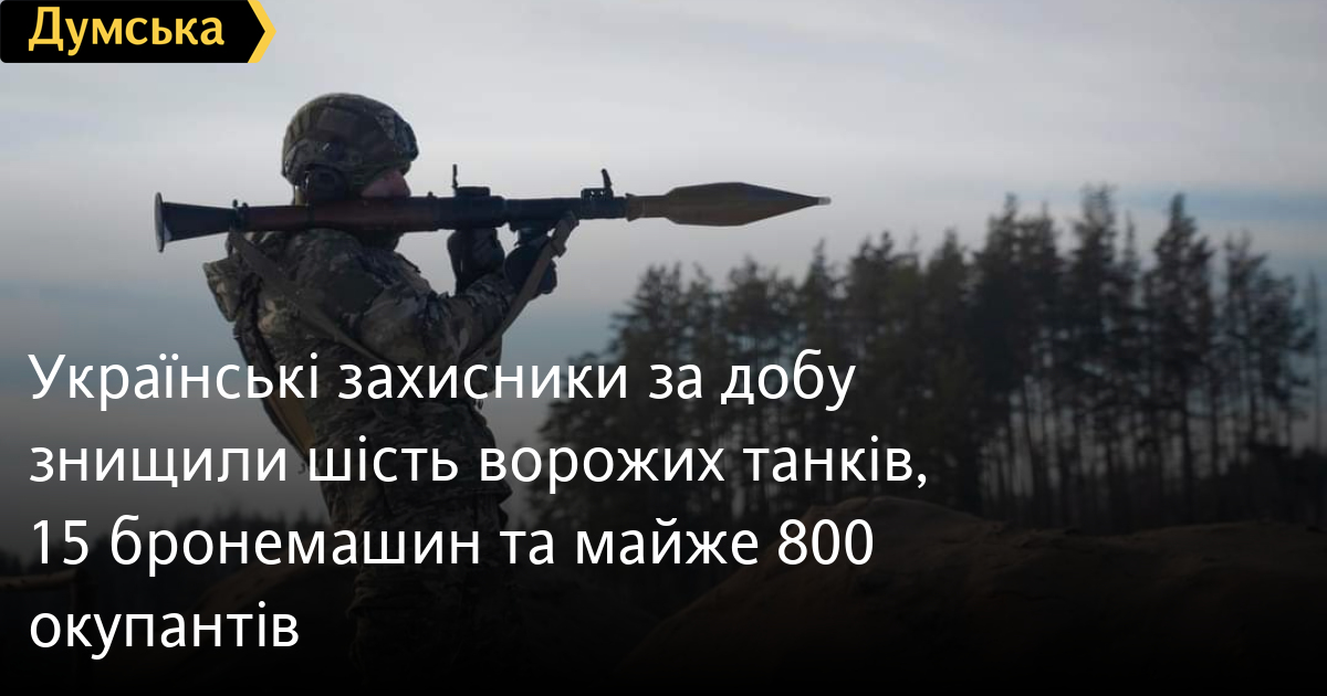 Крім того, за даними Генерального штабу Збройних сил України, наші захисники також знищили 15 бойових броньованих машин, чотири безпілотники, вісім одиниць автомобільної техніки та вісім одиниць спецтехніки.