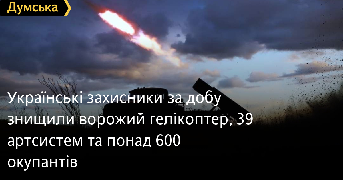 630 осіб, один літак та один гелікоптер втратили російські окупанти минулої доби.