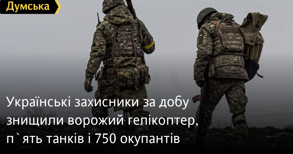 Українські захисники за добу знищили ворожий гелікоптер, п`ять танків і 750 окупантів750 осіб, один гелікоптер і п'ять танків втратили окупанти в Україні за минулу добу. Крім того, за даними Генерального штабу Збройних сил України, наші захисники також знищили сім бойових броньованих машин, шість артсистем, одну РСЗВ, один засіб ППО, три безпілотники і десять одиниць автомобільної техніки. Усього з початку повномасштабного вторгнення втрати ворога склали: особового складу — 108 190 осіб; танків ‒ 3036 одиниць; бойових броньованих машин ‒ 6100 одиниць; артилерійських систем – 2033 одиниці; РСЗВ – 424 одиниці; засоби ППО ‒ 214 одиниць; літаків – 283 одиниці; гелікоптерів – 270 одиниць; БПЛА оперативно-тактичного рівня – 1839; крилаті ракети ‒ 723; кораблі /катери ‒ 16 одиниць; автомобільної техніки та автоцистерн – 4735 одиниць; спеціальна техніка ‒ 181. СМЕРТЬ РОСІЙСЬКИМ ОКУПАНТАМ! Помітили помилку? Виділяйте слова з помилкою та натискайте control-enter |