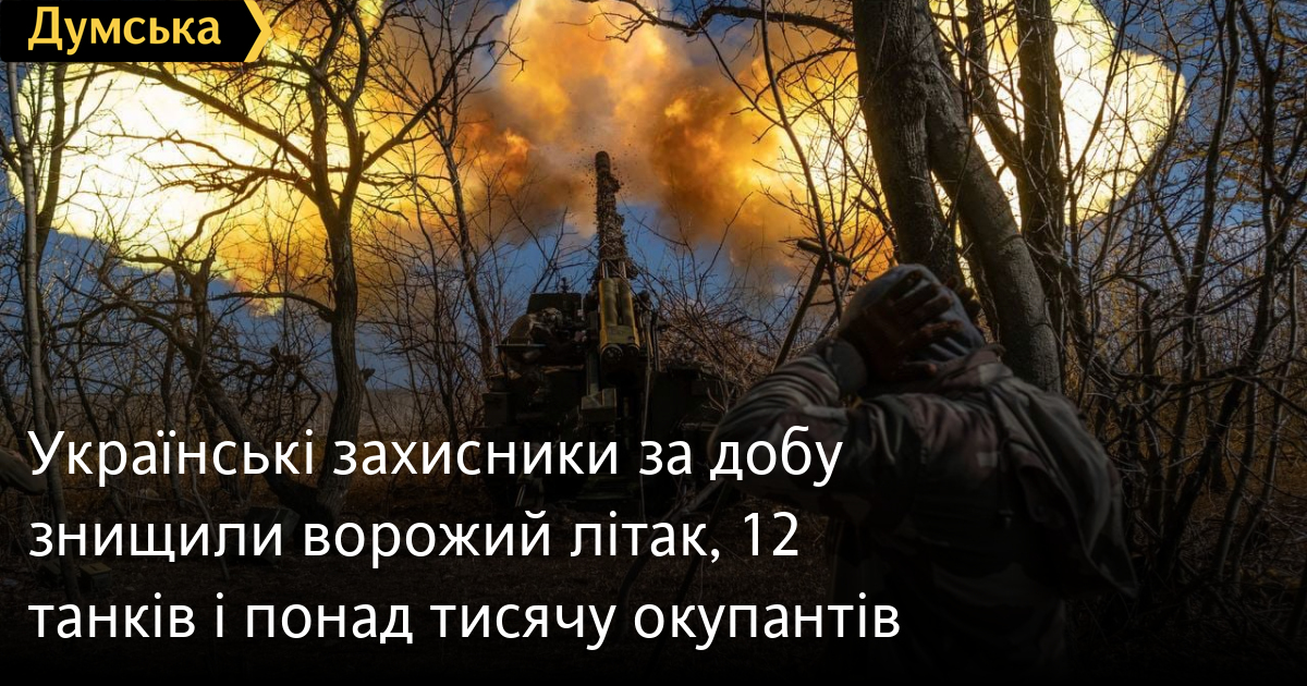 1040 осіб, один літак і 12 танків втратили окупанти в Україні за минулу добу.