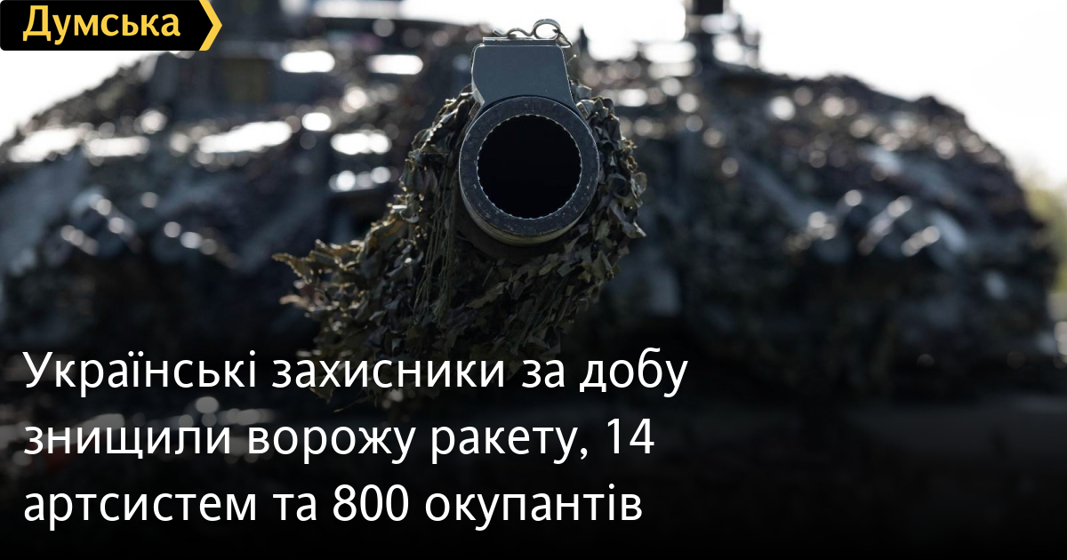 800 осіб, одну крилату ракету та один танк втратили російські окупанти минулої доби.