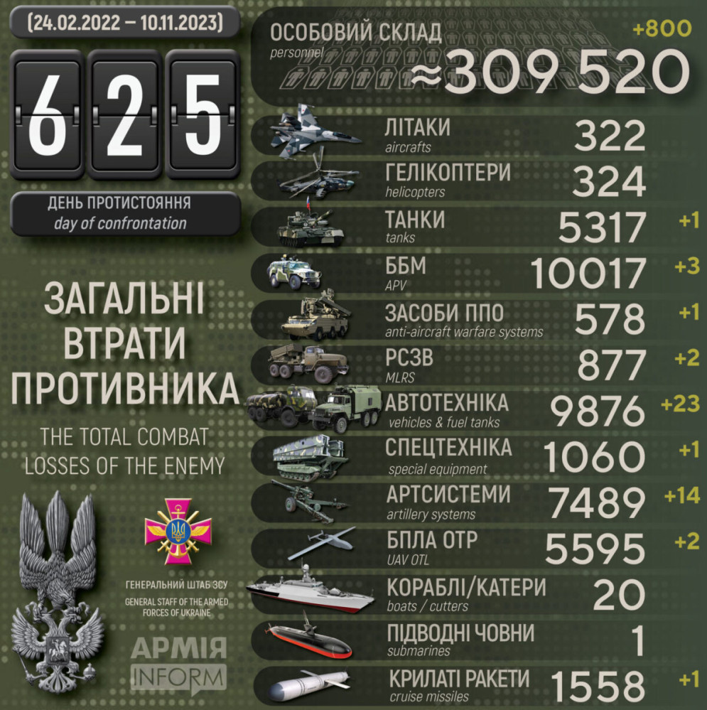 Усього з початку повномасштабного вторгнення втрати ворога склали: