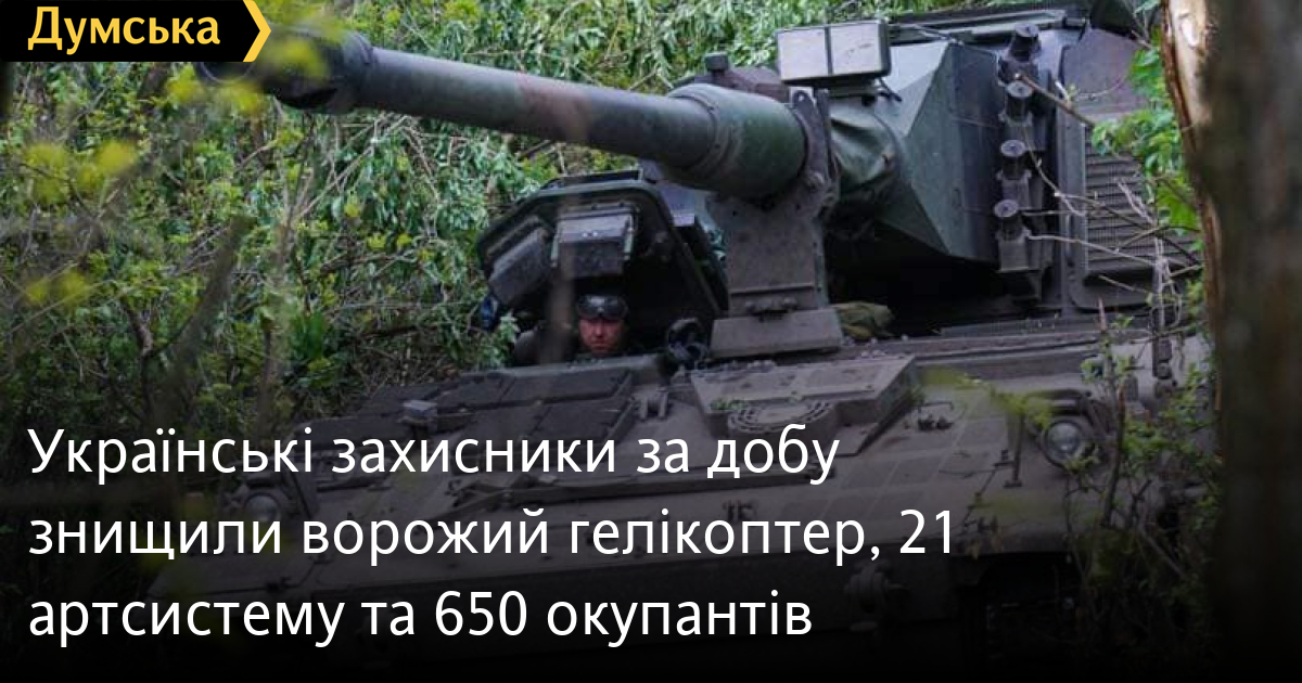 650 осіб, гелікоптер і сім танків втратили окупанти в Україні за минулу добу.